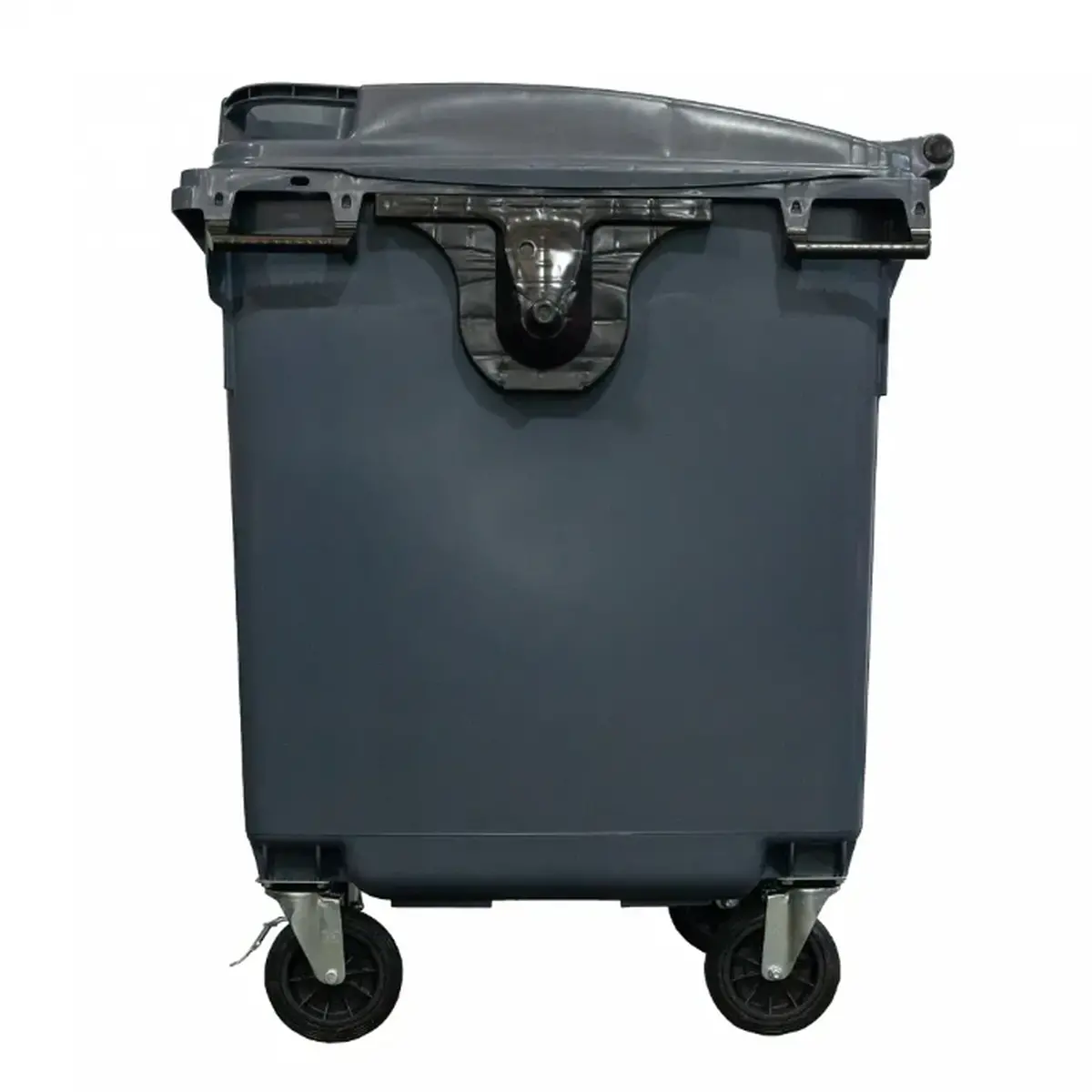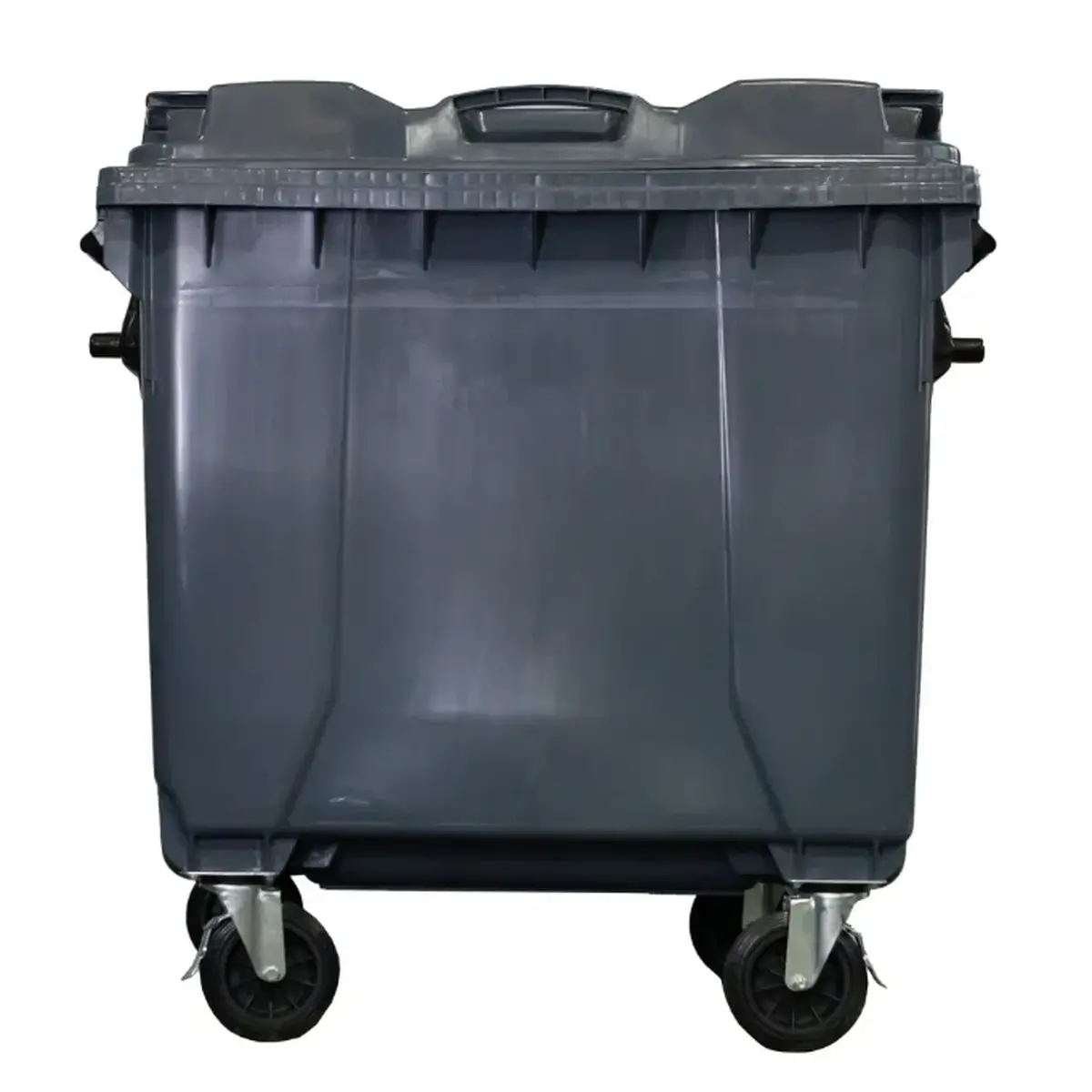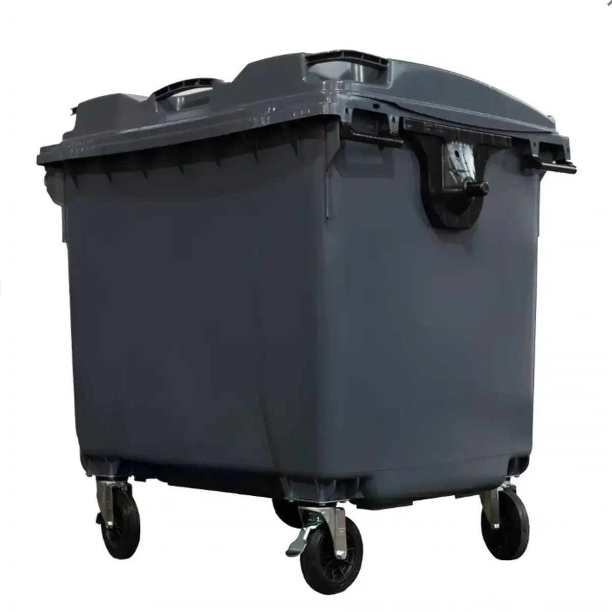 Container de lixo com capacidade de 1000 litros, fabricado em polietileno de alta densidade (PEAD) ou polipropileno (PP), oferecendo alta resistência, durabilidade e segurança.