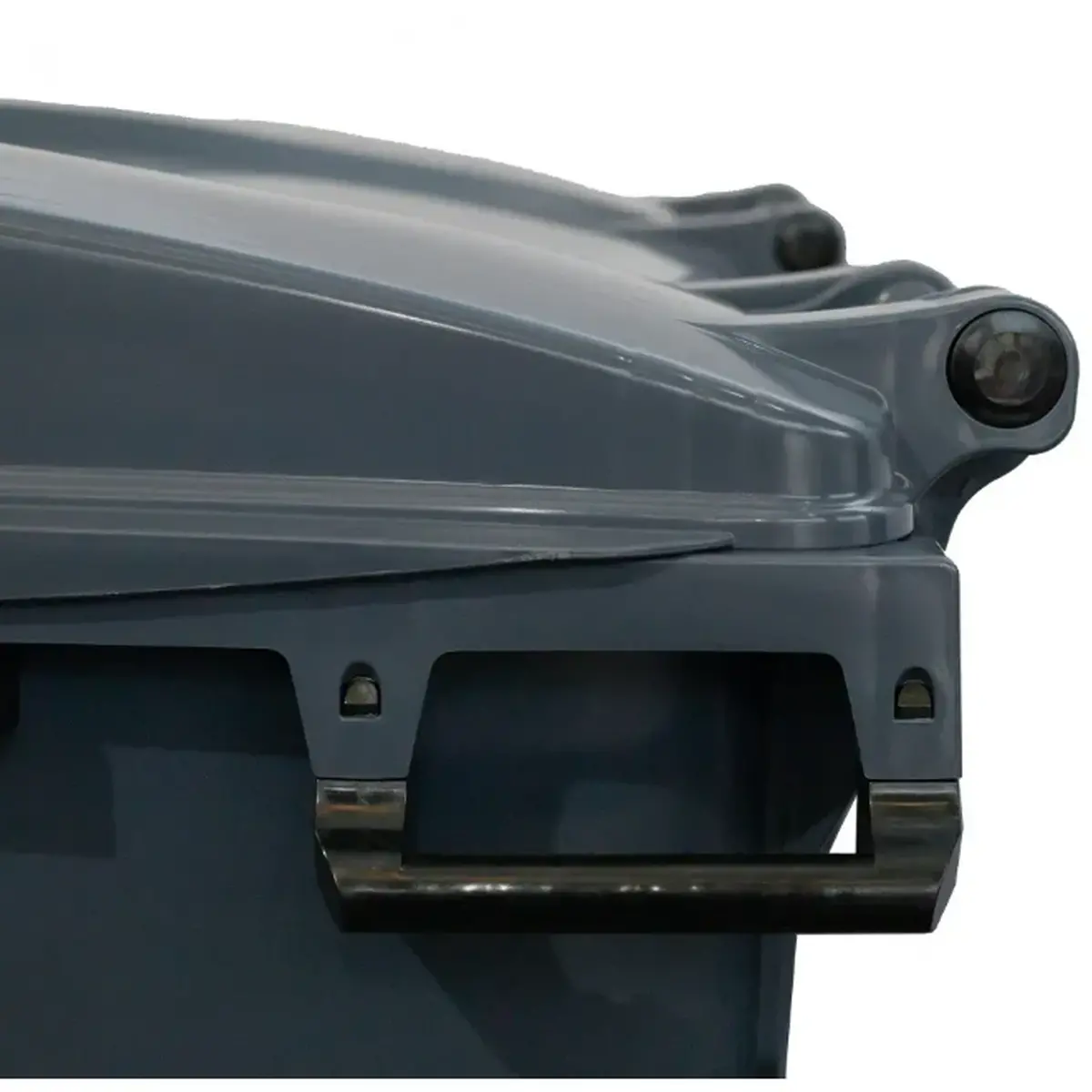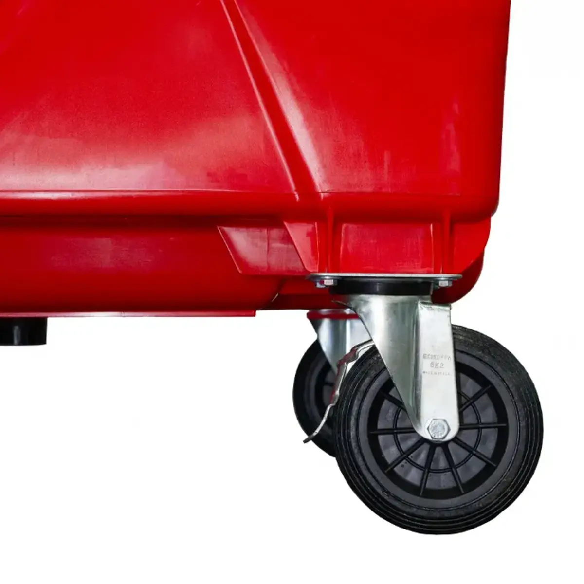 Container de lixo com capacidade de 1000 litros, fabricado em polietileno de alta densidade (PEAD) ou polipropileno (PP), oferecendo alta resistência, durabilidade e segurança.