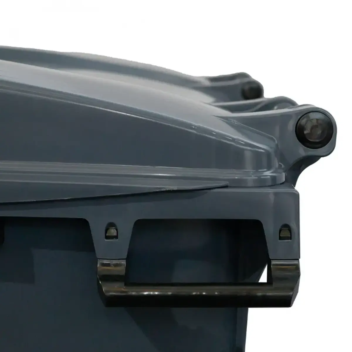 Container de lixo com capacidade de 1000 litros, fabricado em polietileno de alta densidade (PEAD) ou polipropileno (PP), oferecendo alta resistência, durabilidade e segurança.