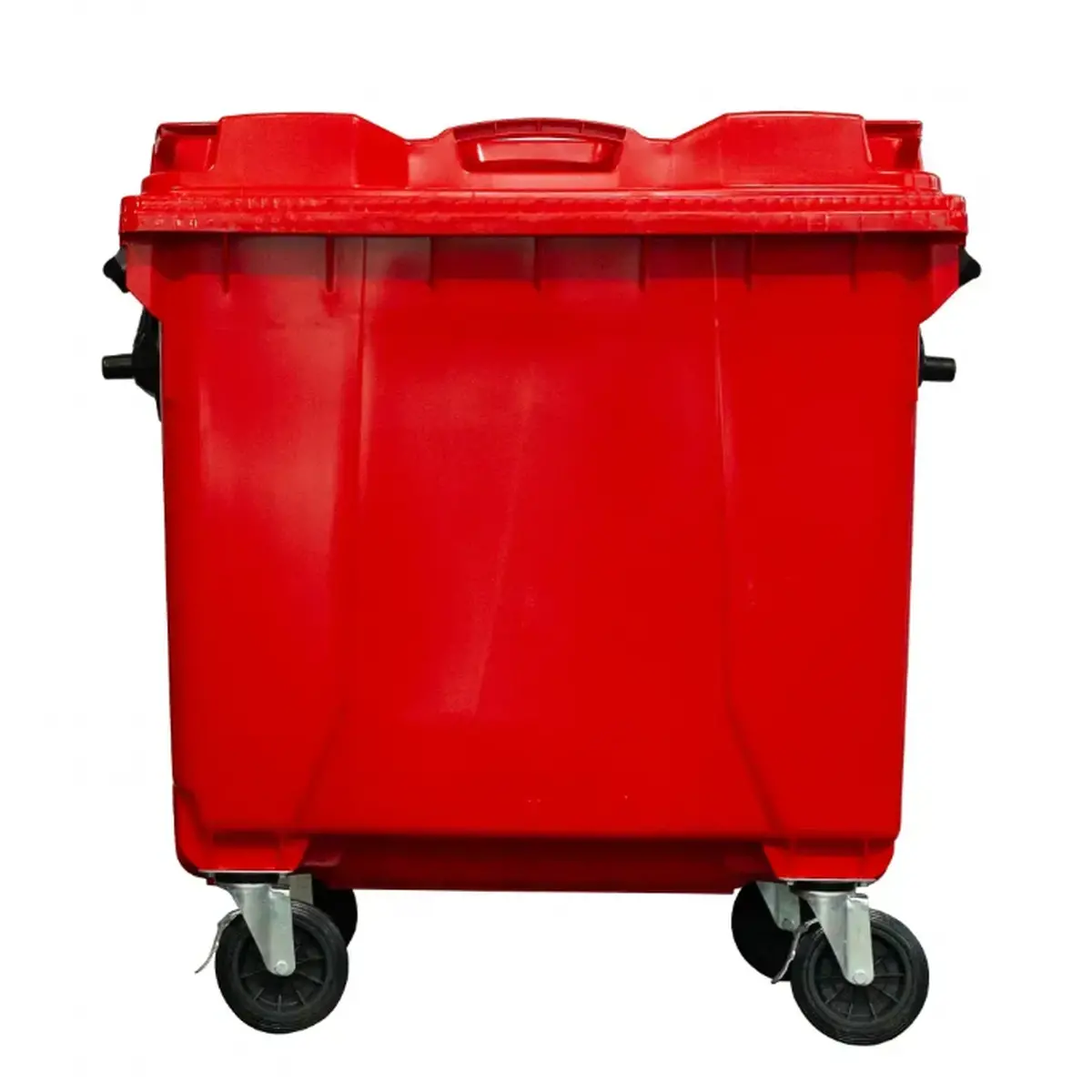 Container de lixo com capacidade de 1000 litros, fabricado em polietileno de alta densidade (PEAD) ou polipropileno (PP), oferecendo alta resistência, durabilidade e segurança.